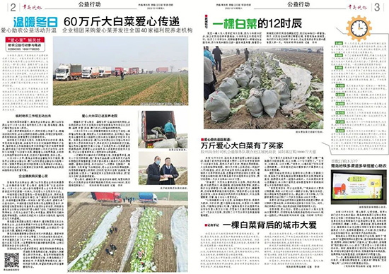 根據(jù)本次”愛心助農(nóng) 溫暖冬季“公益活動(dòng)相關(guān)規(guī)劃,企業(yè)購買的60萬斤大白菜將分批發(fā)放到青島市內(nèi)四區(qū)以及濟(jì)南、淄博、東營、珠海、澳門共計(jì)40家福利院養(yǎng)老院。